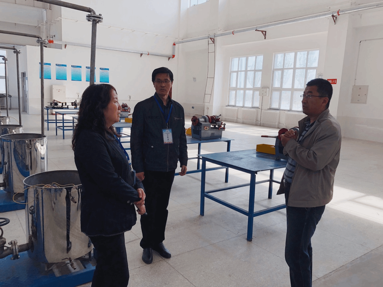 为确保校园安全稳定,4月19日下午,学院领导带领教务处、安保处的相关人员,对我院克拉玛依校区C2、C3、C7教学楼和机械工程系实训厂房进行了安全检查和隐患排查工作。本次检查针对教学楼内的机房、环境安全以及实训厂房内制度上墙、环境卫生、设备摆放等方面,特别是易引发安全事故的物品堆放处、消防设施等进行了仔细地排查,对检查中发现问题和安全隐患现场记录并要求相关负责部门立即落实整改,及时消除安全隐患。