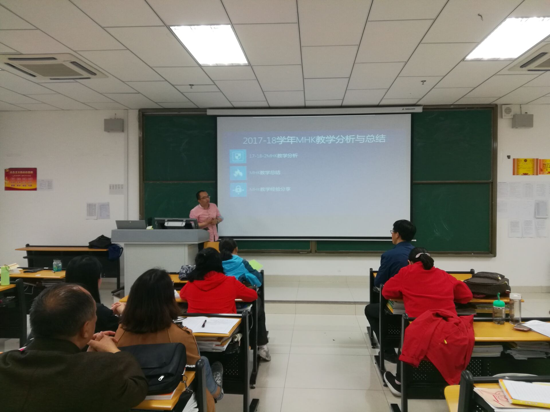 首先,基础教学部钟柱老师围绕2017-2018学年第二学期MHK教学工作开展情况进行了分层次、有重点地分析,与会老师均对各自班级学生MHK口语、听力理解、阅读理解及书面表达部分的掌握情况作出了系统性分析,也进行了MHK教学的经验分享。全体参会老师一致同意正是少数民族学生国语能力不够,导致学生预科阶段后进入专业课阶段学习吃力、步步更不上,倍感压力,导致学生综合职业素养的提高也存在不少的困难,在未来的求职和工作中也受到影响。钟柱老师就从近四次的MHK考试成绩中发现和暴露出的问题进行了分析总结,同时提出了学生学习及教师教学等方面存在的不足和应该注意的地方。