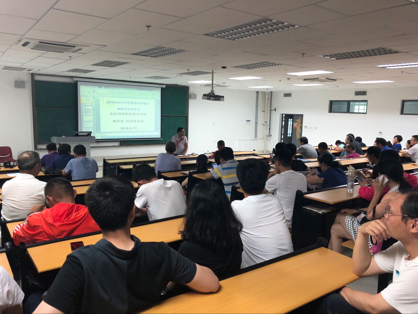 2018年6月13日下午7点教务处召开克拉玛依校区考务会,全体监考教师准时到会,会上,经管系徐新民老师就大学英语B级考试相关的工作进行了部署,针对考试安排、教师监考任务书、试卷封条信息三对照等问题进行讲解,随后教务处副主任马哈木提江强调了大学英语B级考试作为国家级考试的严肃性,要求各级各类考务人员进一步提高法治意识,分工协作、各司其责,严格规范考务操作程序,强化考试纪律意识,做好考试保密等工作。