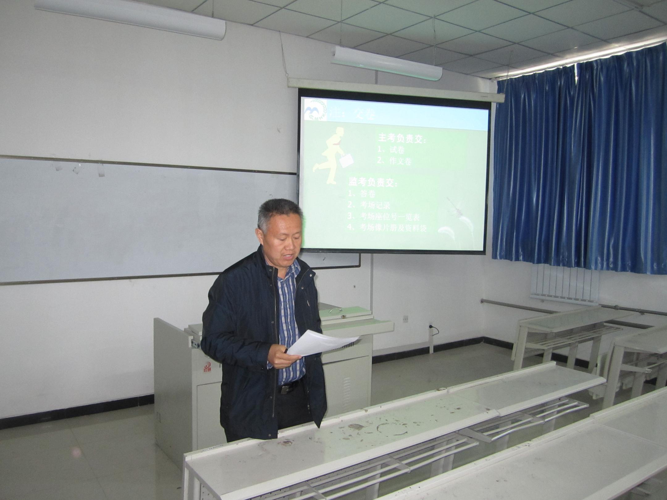 5月9日下午,我院2014年下半年MHK考试考务会在电教楼109教室举行,全校共38名老师参加了此次监考,基础教学部主任邰德育老师到场参加了会议,会议由教务处处长谢波老师主持。