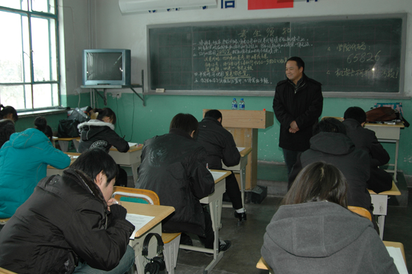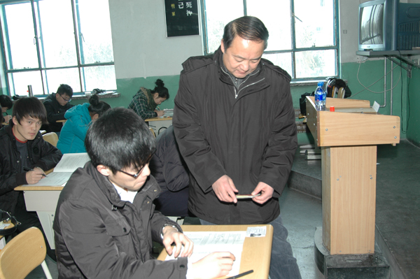 2009年12月20日我院与全国同步进行了大学生英语应用能力B级考试,本次考试有1121名考生报名参加,共设有38个考场,考场分布在学院1号和2号教学楼,参与本次考试的工作人员,包括监考人员,考务人员以及后勤及保卫等,共有近90余名教师参加了本次考务工作。本次考试学生处以及各系部都能够大力支持,积极推荐考务人员;学院领导对此项工作也非常重视,在考试过程中,学院王和院长、院长助理付梅莉老师亲临考试现场,进行了巡视;自治区自考办领导以及克拉玛依教育局领导也都对考场进行了巡视。在学院各单位的积极配合下,本次考试圆满成功,受到了自治区自考办巡视领导的好评。