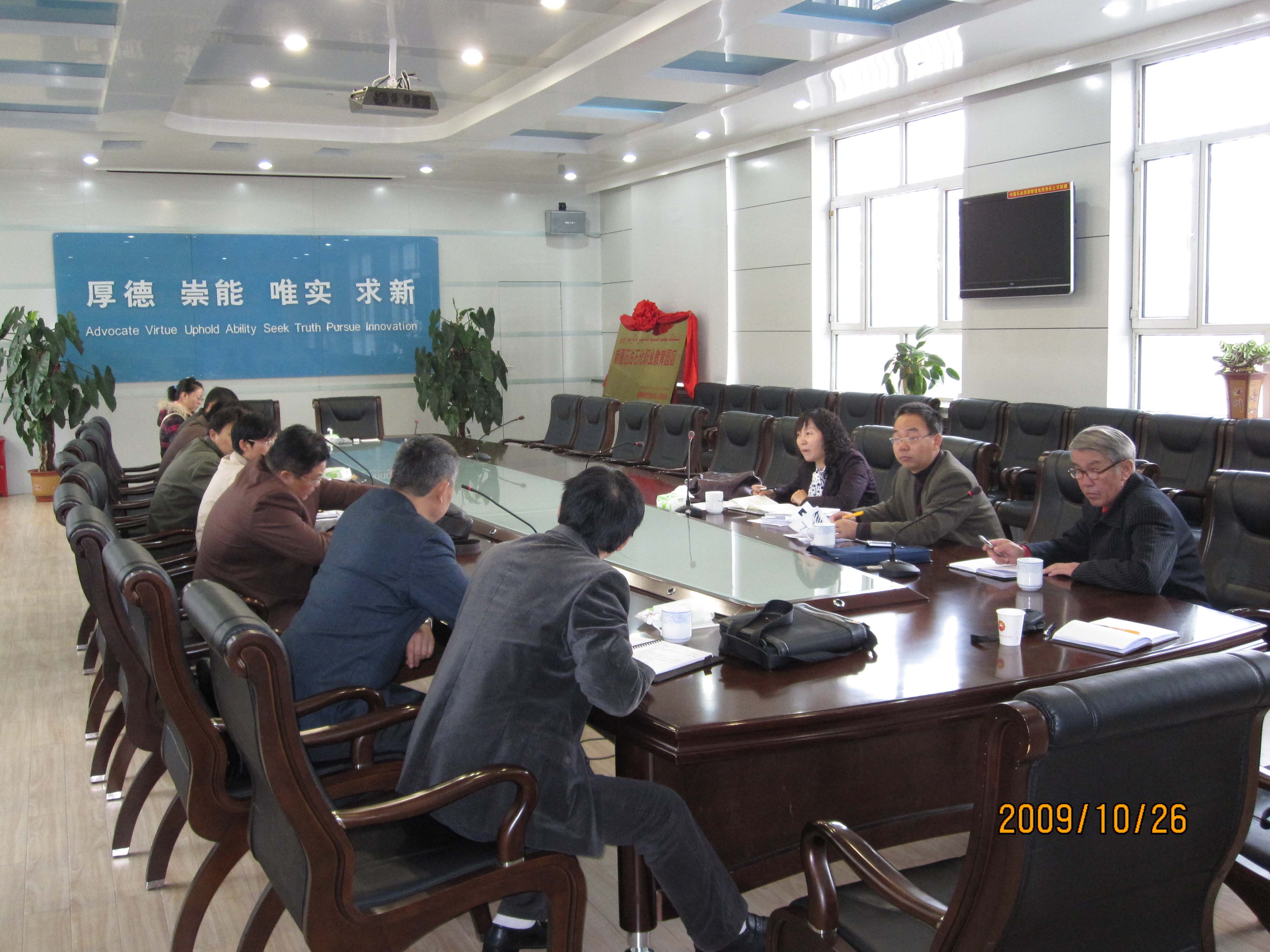 2009年10月26日上午10:00,学院教务处在机关一楼会议室召开09-10-1学期第五次教务例会,会议由学院院长助理、教务处处长付梅莉主持,教务处副处长陈辉、教务处副处长马合萨提、石工系主任樊宏伟、基础教学部主任黄杰、机械工程系主任李邦志、电子电气工程系主任谢波、信息工程系主任陆立松、经济管理系副主任刘新生、石化系副主任喻朝善、汽车工程系副主任史勇、思政教科部栗晓芸参加了本次会议。