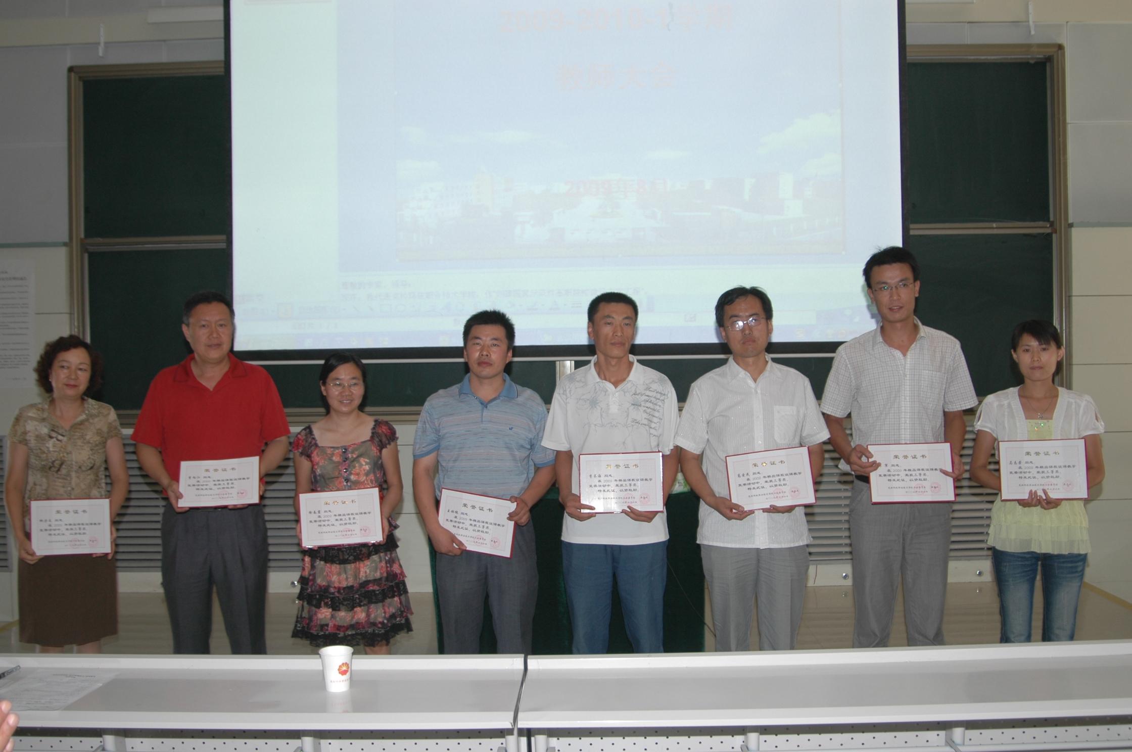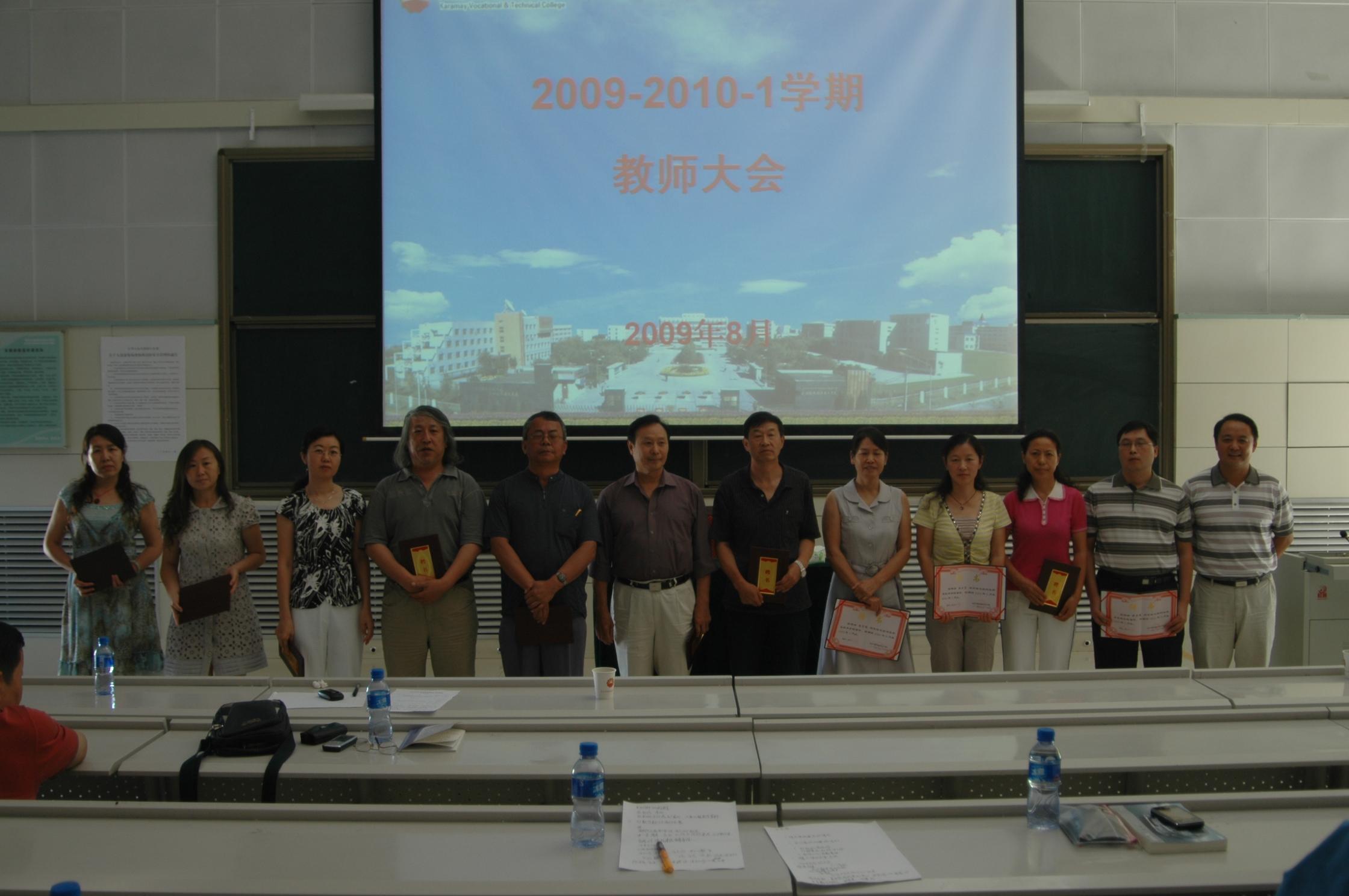 会议由教务处副处长陈辉老师主持。会上,院长助理、教务处处长付梅莉老师首先从完成教学工作情况、专业建设情况、精品课建设、实训基地建设、教材建设、技能培训和鉴定工作、教师队伍建设、教学管理工作及存在的问题等方面对08-09-2学期进行了工作总结。在学院党委的正确领导下,上学期我院各教学部门都较好的完成各项教学工作,专业建设取得阶段性成果,钻井技术专业教学团队评为2009年度自治区优秀教学团队;《石油化工流体输送单元操作》、《化工泵的运行、维护与检修》、《压缩机的运行、维护与检修》评为2009年自治区级精品课,其中《石油化工流体输送单元操作》已经通过2009年国家精品课的评审;汽车检测与维修专业通过2009年自治区特色专业的评审;2009年新增《会计专业》通过了评审。接着对09-10-1学期的工作做了详细的安排和部署。针对当前形势,各系部要做好开学初学生的思想教育引导工作,继续深入开展高等职业教育思想的学习研究,以先进的教育思想指导学院的教学改革,用足够的努力扎扎实实做好自己的本职工作,做好示范性院校建设工作,为学院的可持续发展共同奋斗!