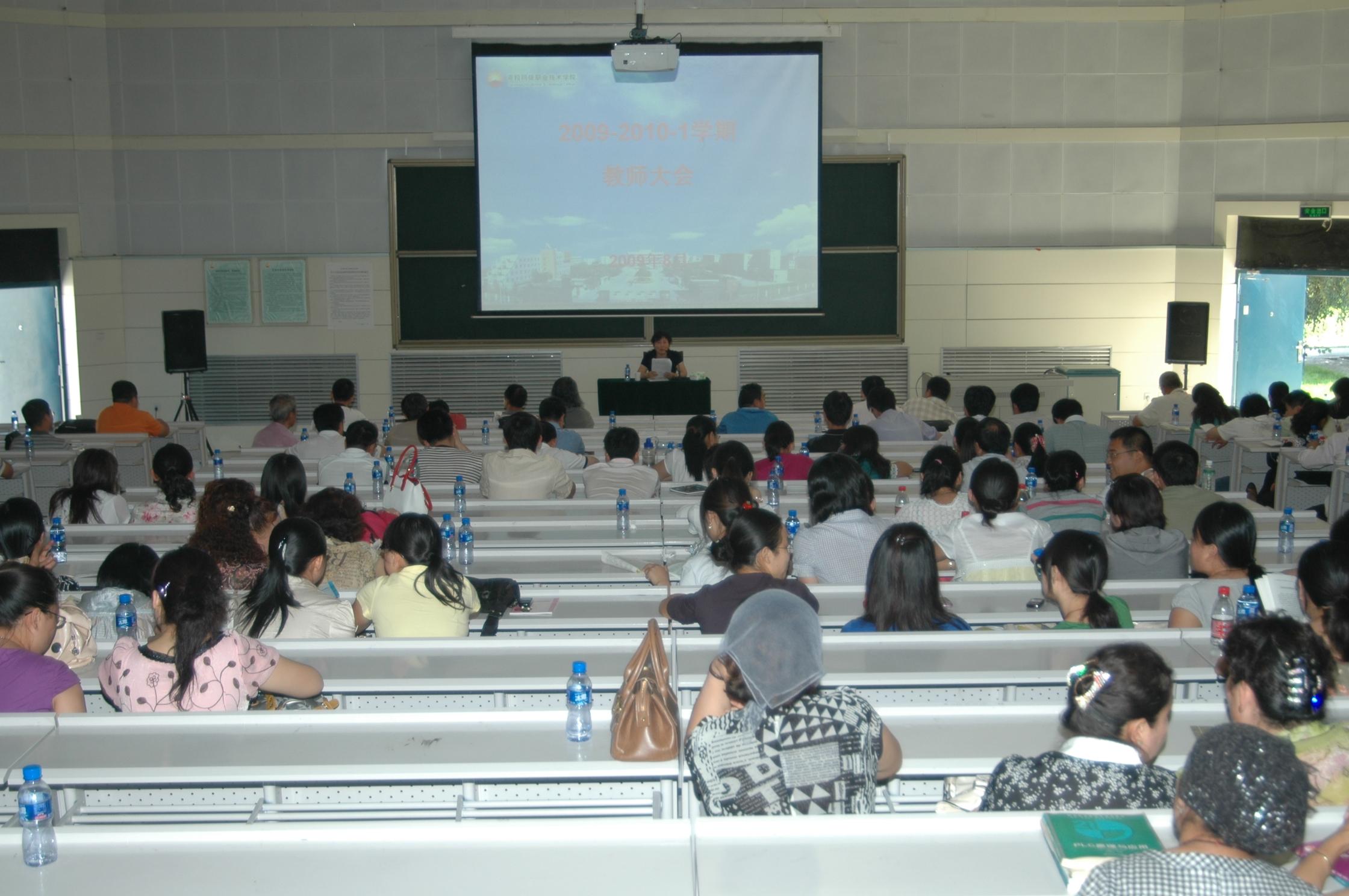 新学期伊始,2009年8月26日上午11:30教务处在大报告厅召开09-10-1学期教师大会,学院王和院长参加了本次会议。