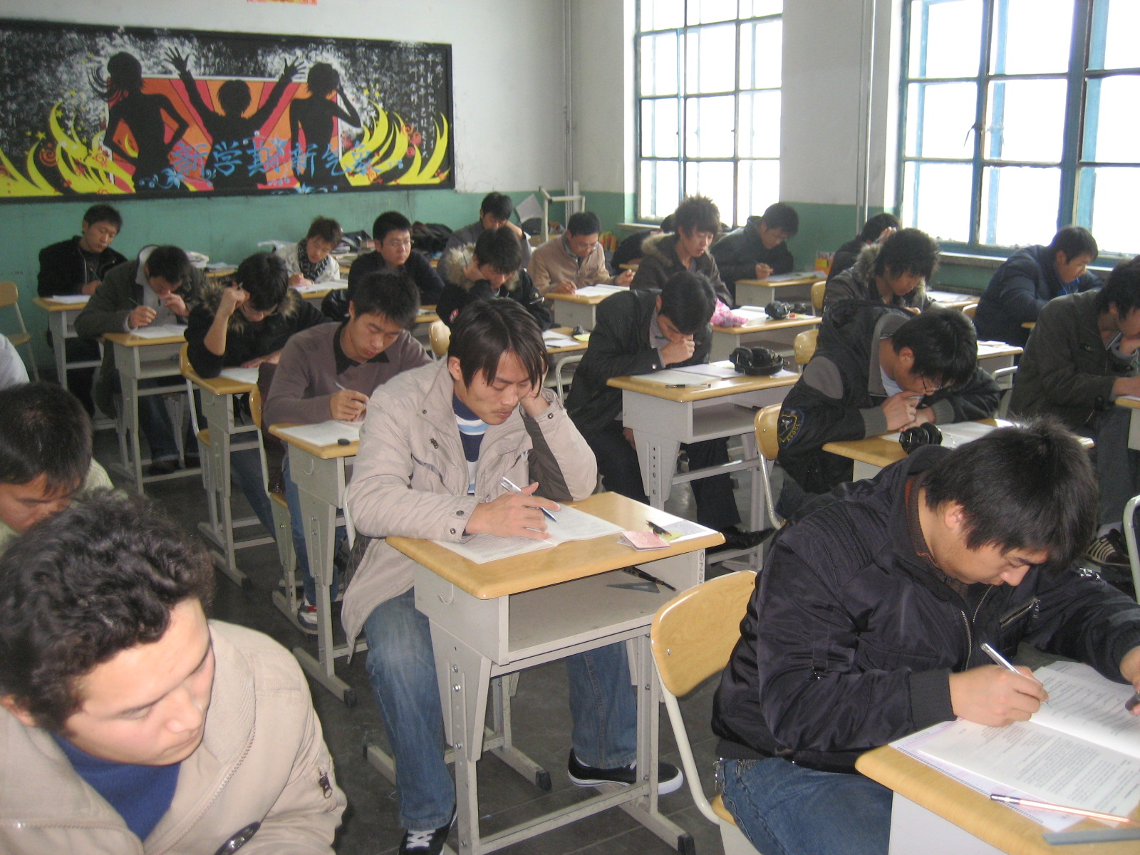 2008年12月21日我院与全国同步进行了大学生英语应用能力B级考试,参加本次考试考生1553人,共设有52个考场,考场分布在一号教学楼和二号教学楼,参于这次考试考务工作人员110余名。自治区自考办郁洪斌主任、克拉玛依市教育局刘德祥主任、奎屯教育局林杰主任到我院进行了巡考。