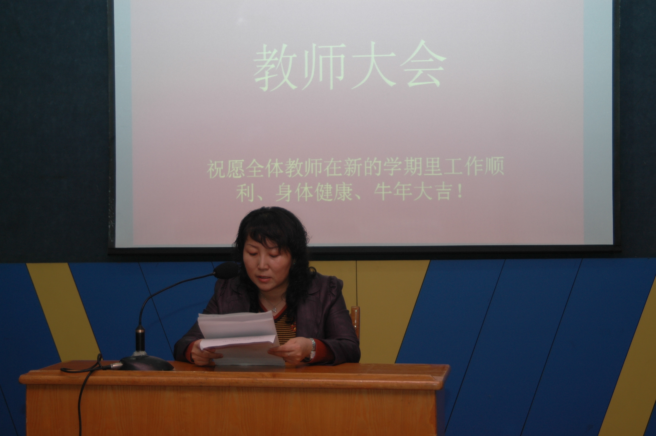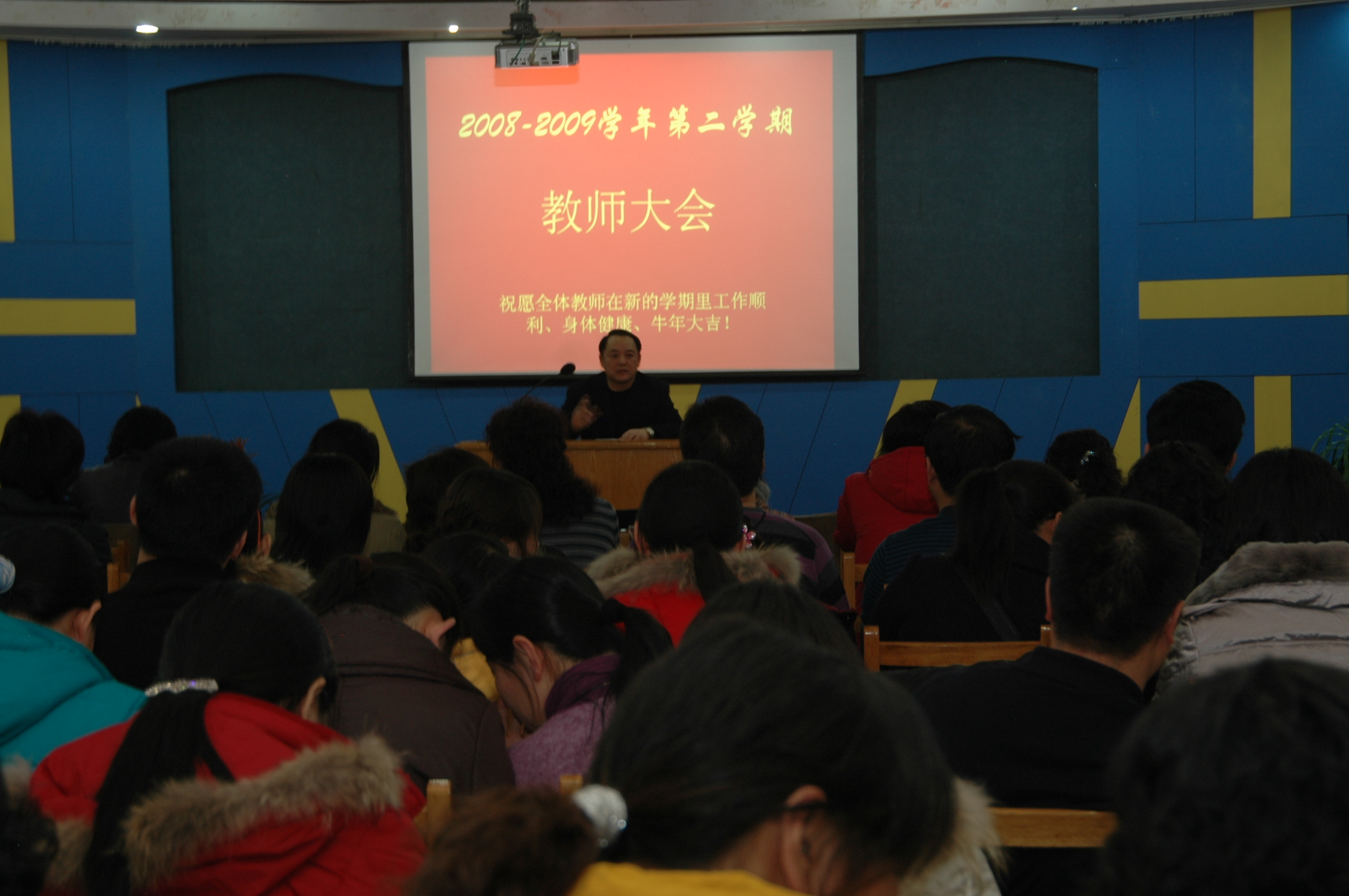 新学期伊始,2009年2月13日下午16:00点,教务处在桃李园二楼多功能厅召开08-09-2学期教师大会,学院王和院长参加了本次会议。