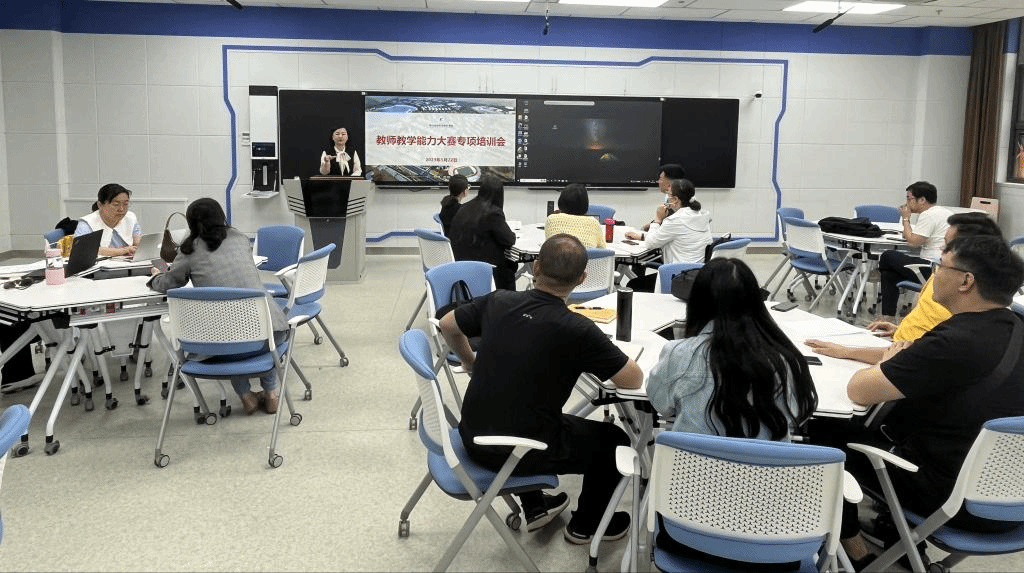 为促进我院教师教学能力提升,充分做好2023年自治区教师教学能力比赛,以比赛为引擎,打造创新型教师教学团队,5月22日至23日,学院教务处在C2教学楼Ⅲ区105智慧教室开展“教师教学能力比赛”第二轮专题培训,邀请国家级课程思政教学名师、全国职业院校教学能力比赛评委李金艳副教授做方案剖析与备赛策略专题培训,并对5个参赛团队第一轮培训后修改的参赛作品进行一对一交流指导。
