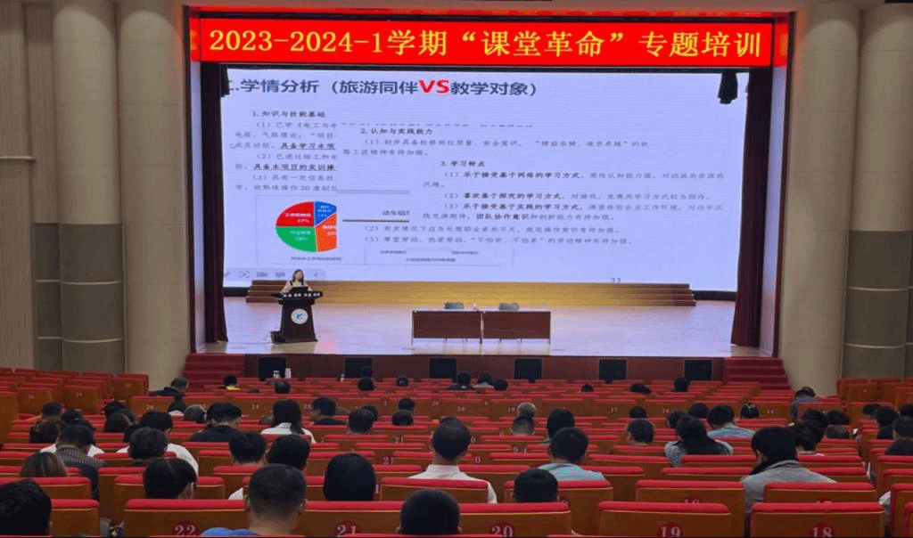 实现职业教育高质量发展,需要在多个方面精准发力,其中推进“课堂革命”是实现职业教育高质量发展的重要一环,为了提高学院教师运用人工智能、互联网、现代信息技术不断革新教学手段、改进教学方法、创新教学模式,将各种新技术融入并整合到教学内容、新形态教材及相关配套教学资源建设中的能力,教务处于9月20日邀请全国黄炎培职业教育杰出教师、国家课程思政教学名师、国家课程思政教学团队负责人、湖南工业职业技术学院龚娟教授为全院教师开展题为《砥砺深耕,笃行致远—教学能力比赛,成长比成功更重要》的培训交流。本次培训会由教务处处长蒋定建主持。
