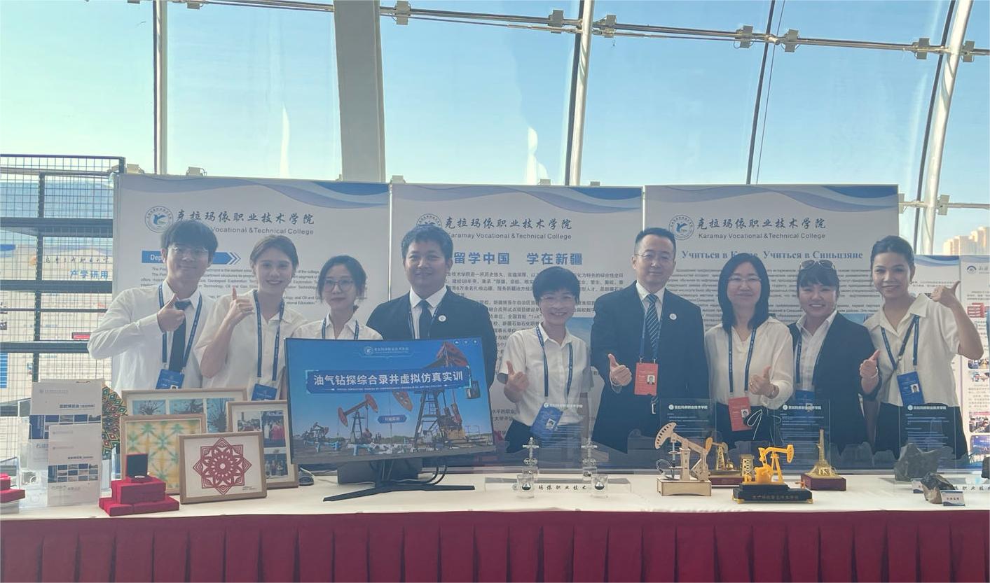 我院展位由三部分构成。刘旭莹副院长通过模型向海内外高校嘉宾们介绍石油工程技术产业链的地质勘探、石油钻井、油气开采、油气储运四个主要环节,生动形象地解说着石油的演化过程和石油产品对人类社会的重大意义;马雪山副处长熟练演示着石油工程技术仿真实训平台,介绍我院虚拟仿真实验实训系统在解决实际生产过程“三高三难”问题取得的成果;安熠哲院长向嘉宾们展示往届留学生的工艺作品,介绍我院在深化文明交流互鉴、弘扬中华优秀传统文化方面取得的成效。招生就业指导处汉磊、机械工程分院迪娜·吐于山承担俄语翻译工作,基础与公共教学分院王笑如、曹青青承担英语翻译工作。参展海内外嘉宾们纷纷咨询我院石油工程技术专业留学生招生情况,并领取学院宣传册、校徽留念。