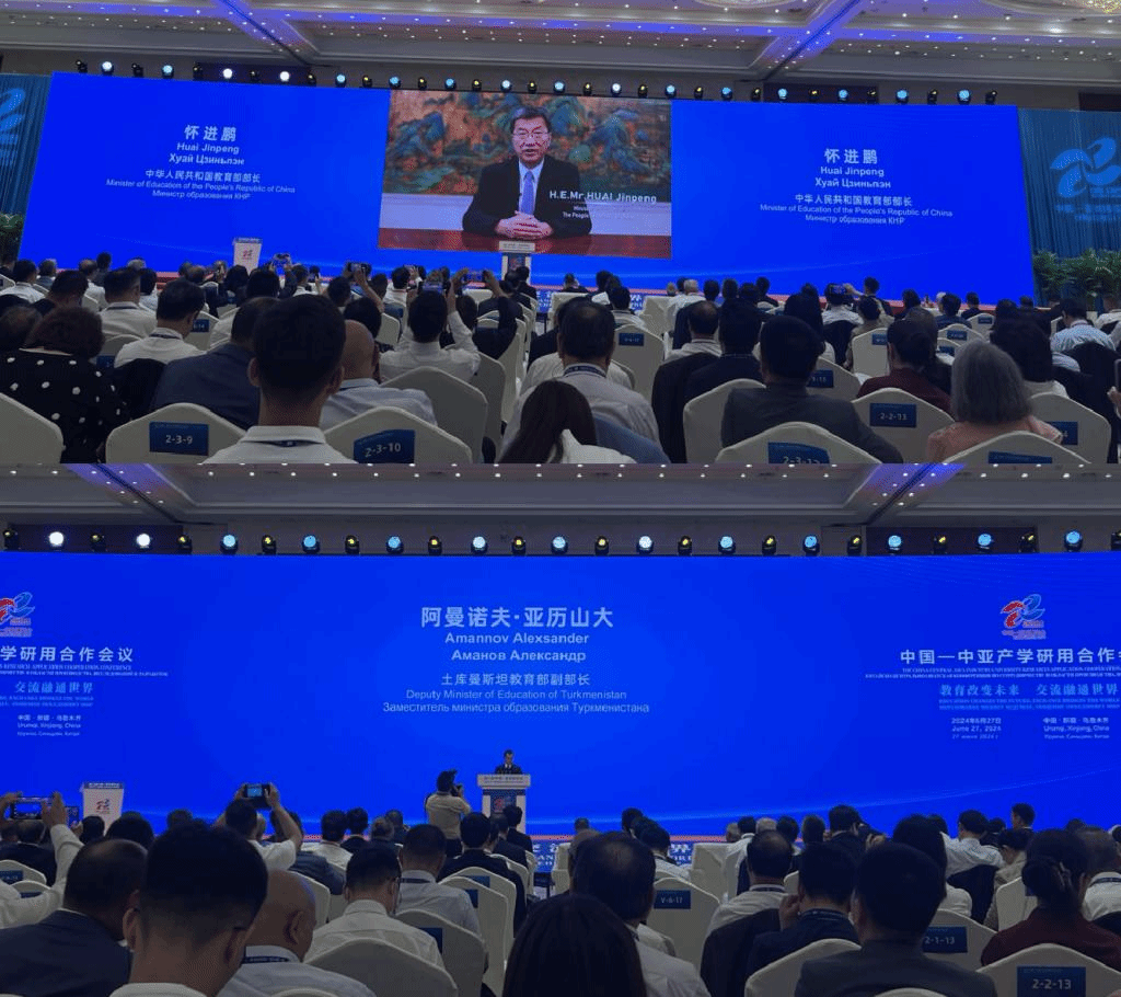 中国-中亚产学研用合作会议由自治区党委常委、宣传部部长、教育工委书记王建新主持。教育部党组书记、部长怀进鹏发表视频致辞,他倡议创建共商、共建、共享、共治的协同联动机制,通过丰富产学研用合作内涵,推动中国-中亚教育科技人才一体发展;自治区党委副书记、自治区主席艾尔肯·吐尼亚孜在致辞中表示,新疆持续加强与中亚国家地方间交流沟通,在科技、教育等领域合作取得积极进展,有力促进了人文交流和民间友谊;中亚五国教育部门代表、高校代表、联合国教科文组织东亚地区办事处代表、中国-中亚机制秘书处代表分别讲话。