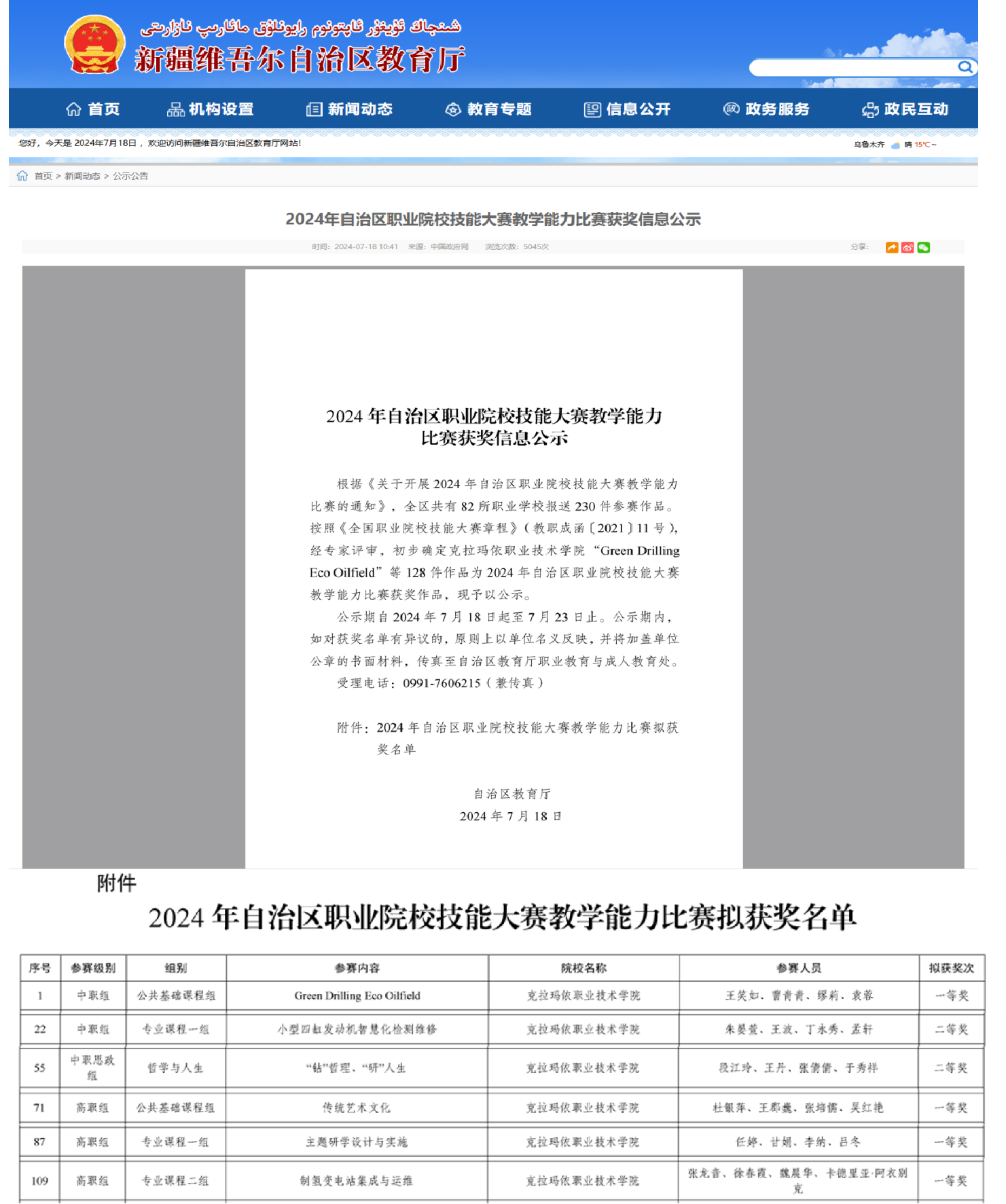 图4 获奖信息公示