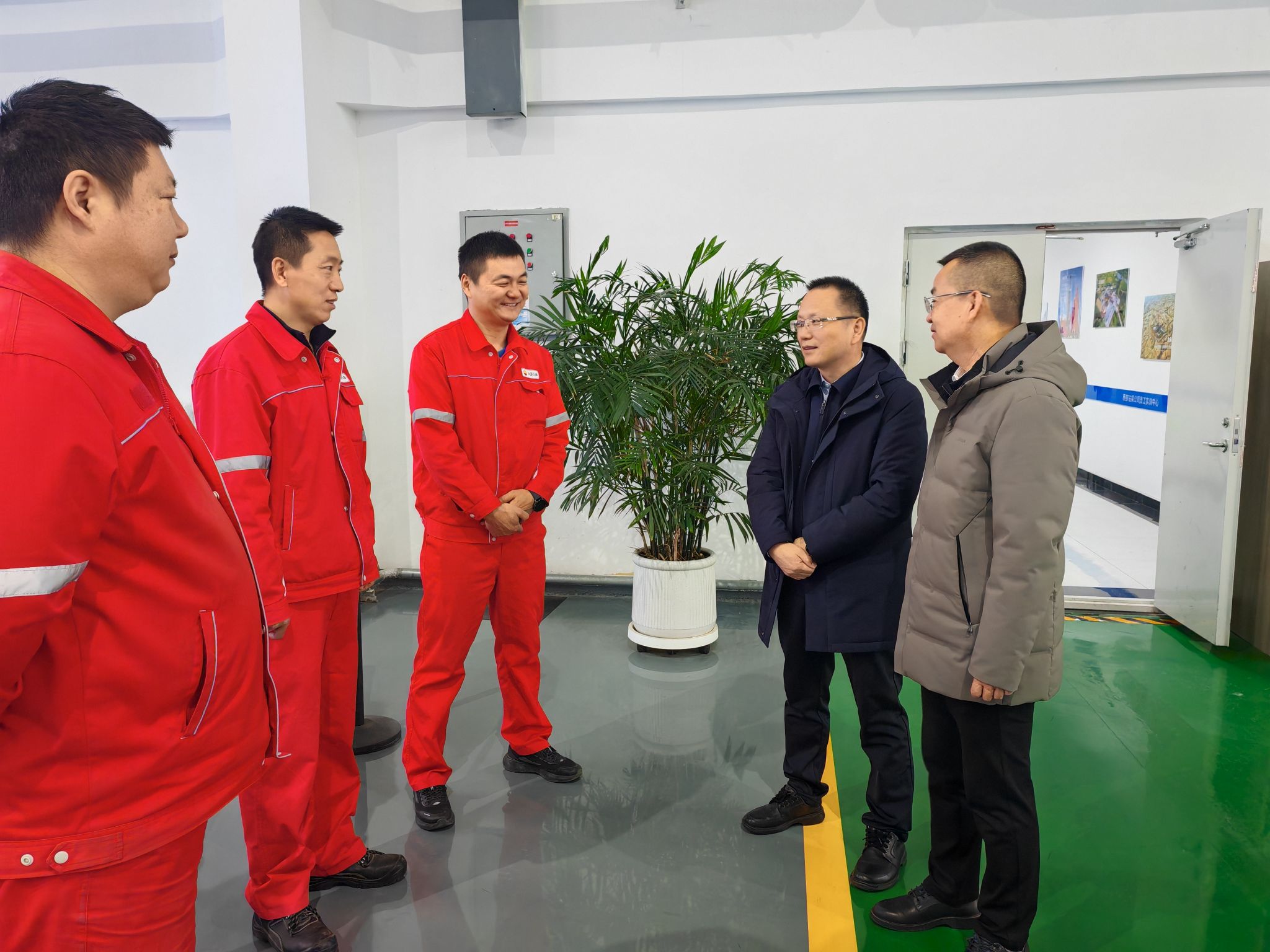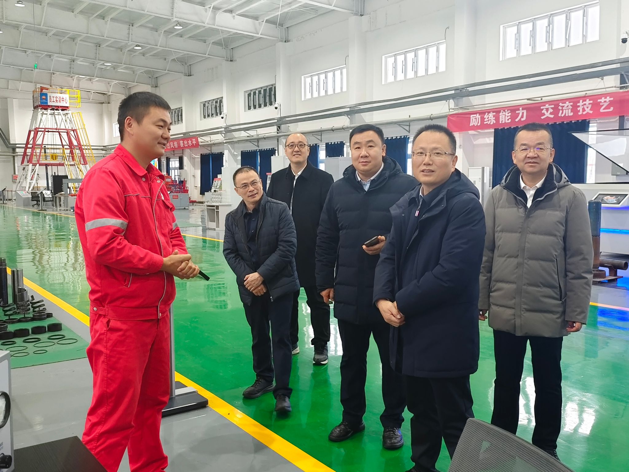 在员工实训中心主任罗昱恒的陪同下,张应勋书记一行先后参观了实训中心内的数智化实训基地、专家工作室、实训井场等场所,和企业校友进行了亲切交谈,全面了解了实训中心企业技术研发与业务发展情况,参观过程中双方就人才培养、师资共建共享、产学研合作、校企资源开发等工作交换了意见。